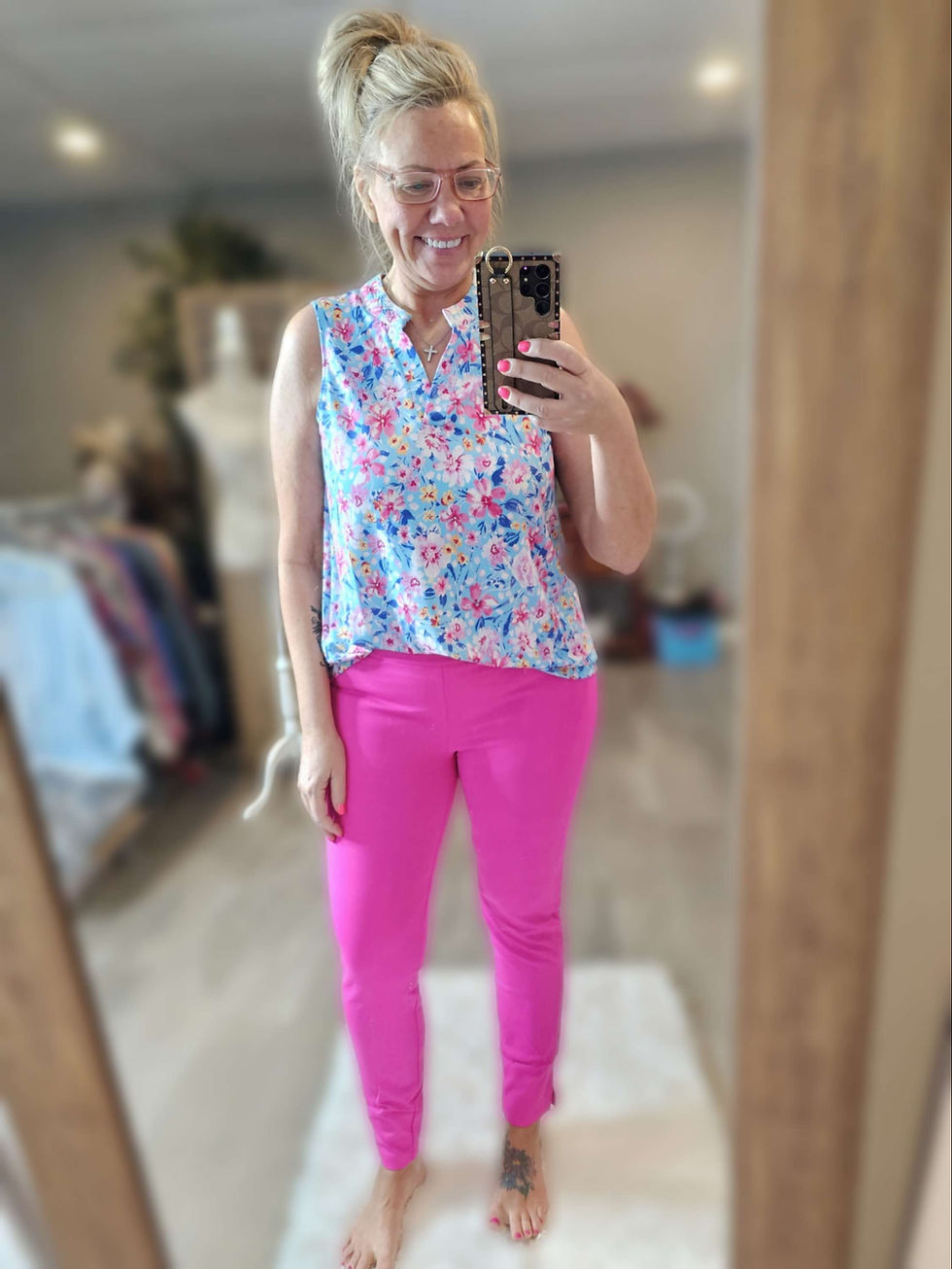 Addison Henley Tank - Blue/Yellow Floral 1057